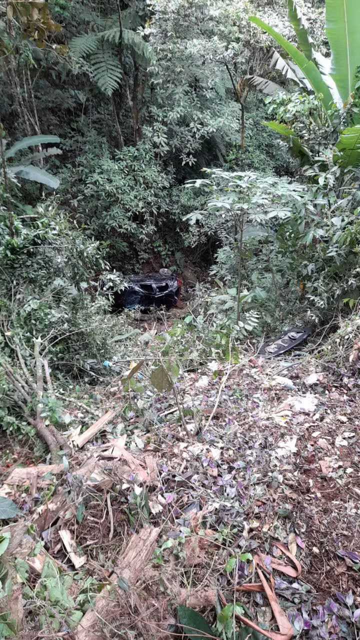 Segundo o Corpo de Bombeiros, o veículo Palio saiu da pista e caiu em uma ribanceira de aproximadamente 30 metros.