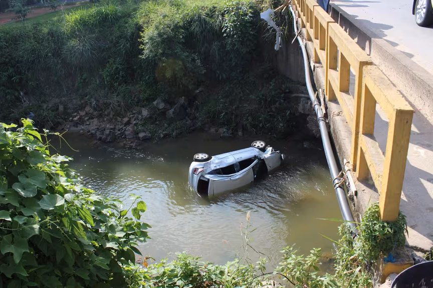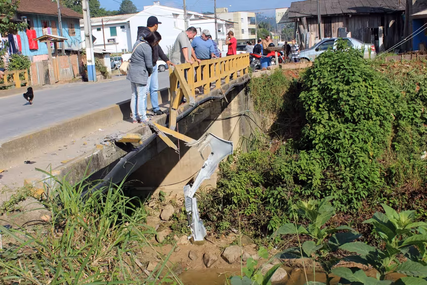 Por volta das 9h40 desta segunda-feira, 27, um veículo Agile, cor branca e placas de Guabiruba, caiu no ribeirão Guabiruba, após romper a mureta de proteção da ponte, localizada no início da rua Guabiruba Sul.