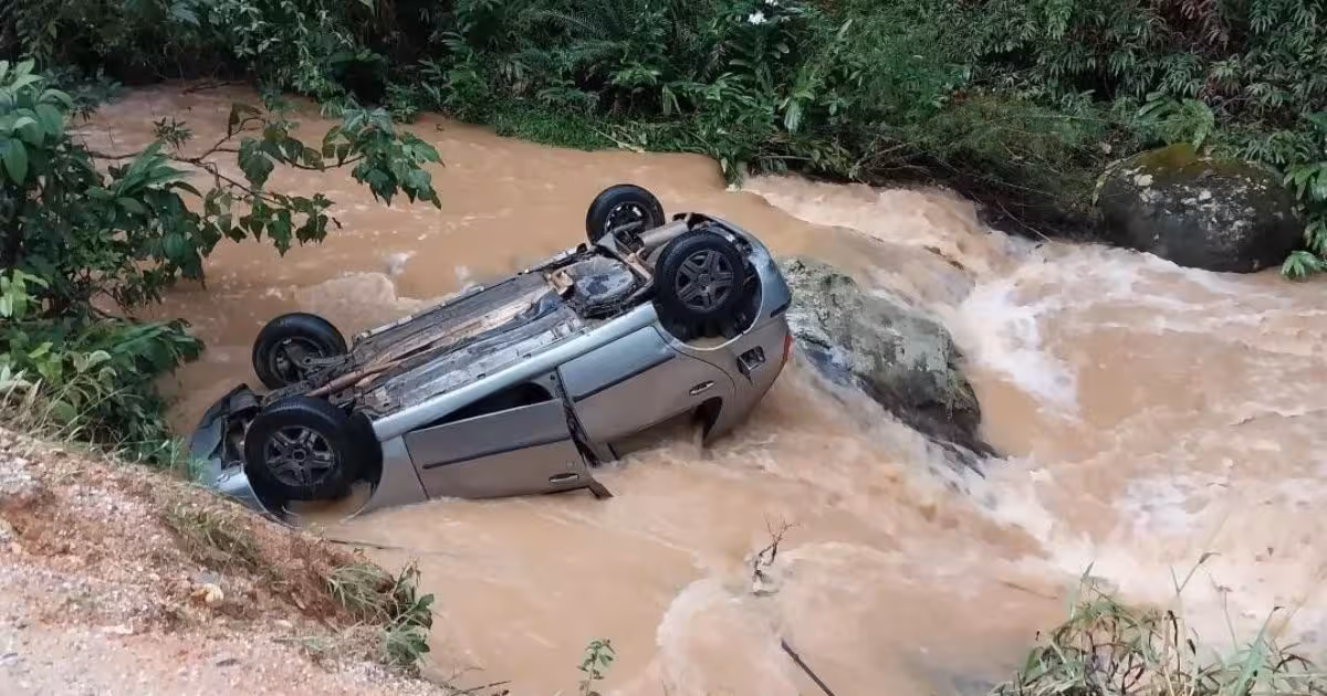 Carro cai em ribeirão próximo da cachoeira do Taquaruçu, em Brusque