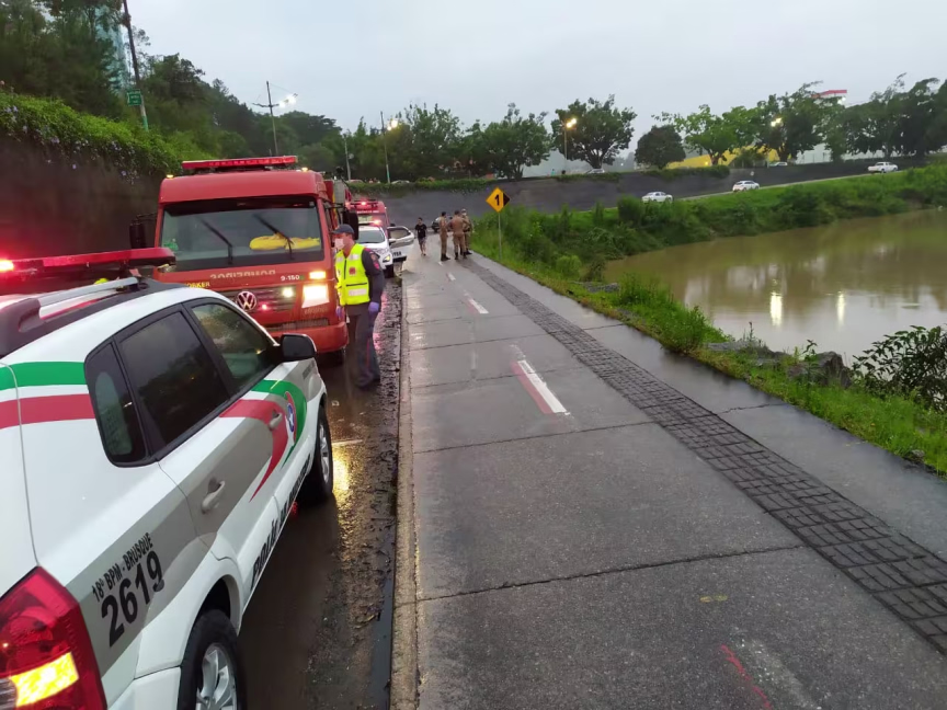 Um carro caiu no rio e duas mulheres foram levadas ao hospital neste domingo, 6, no Centro de Brusque. A queda foi registrada na avenida Bepe Rosa, por volta das 18h30.