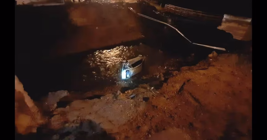 Um carro caiu na ribanceira do rio e duas pessoas ficaram feridas na madrugada desta sexta-feira, 13, no bairro Guarani, em Brusque.