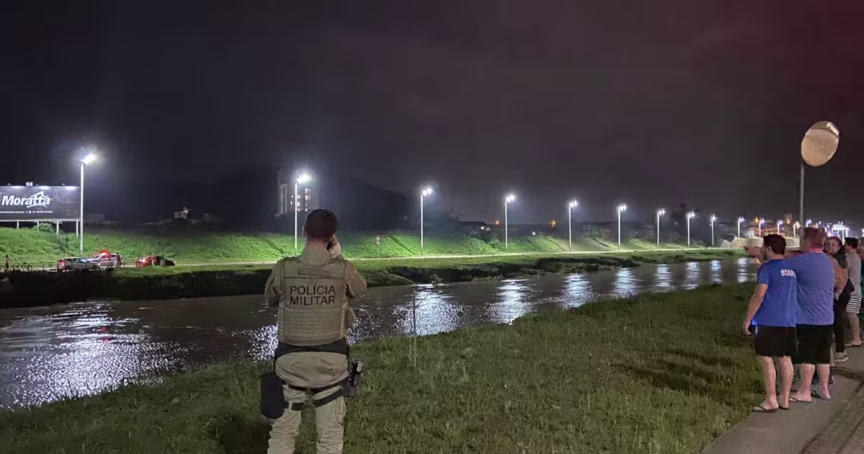 Por volta das 20h desta quinta-feira, 1, um carro caiu no rio Itajaí-Mirim, no bairro Santa Rita, em Brusque.