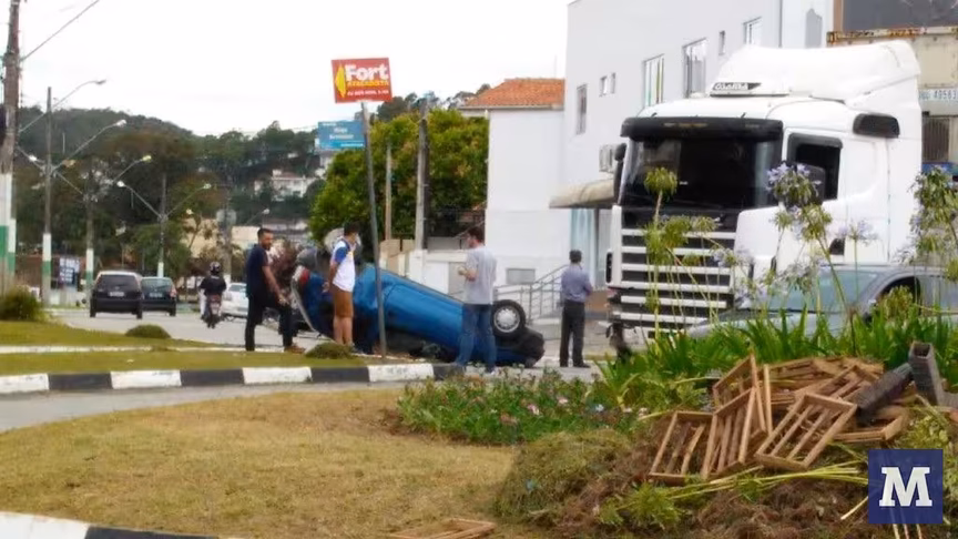 Carro capota ao ser atingido por carreta, no Jardim Maluche