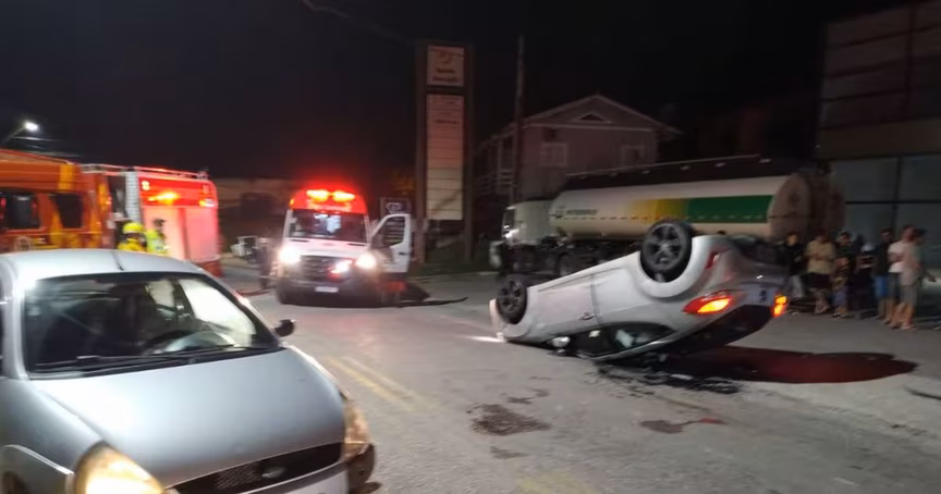 Carro capota após colisão no Dom Joaquim, em Brusque