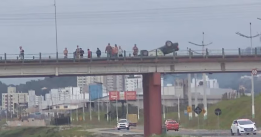 Carro capota na ponte da Bilu, no bairro Santa Terezinha, em Brusque