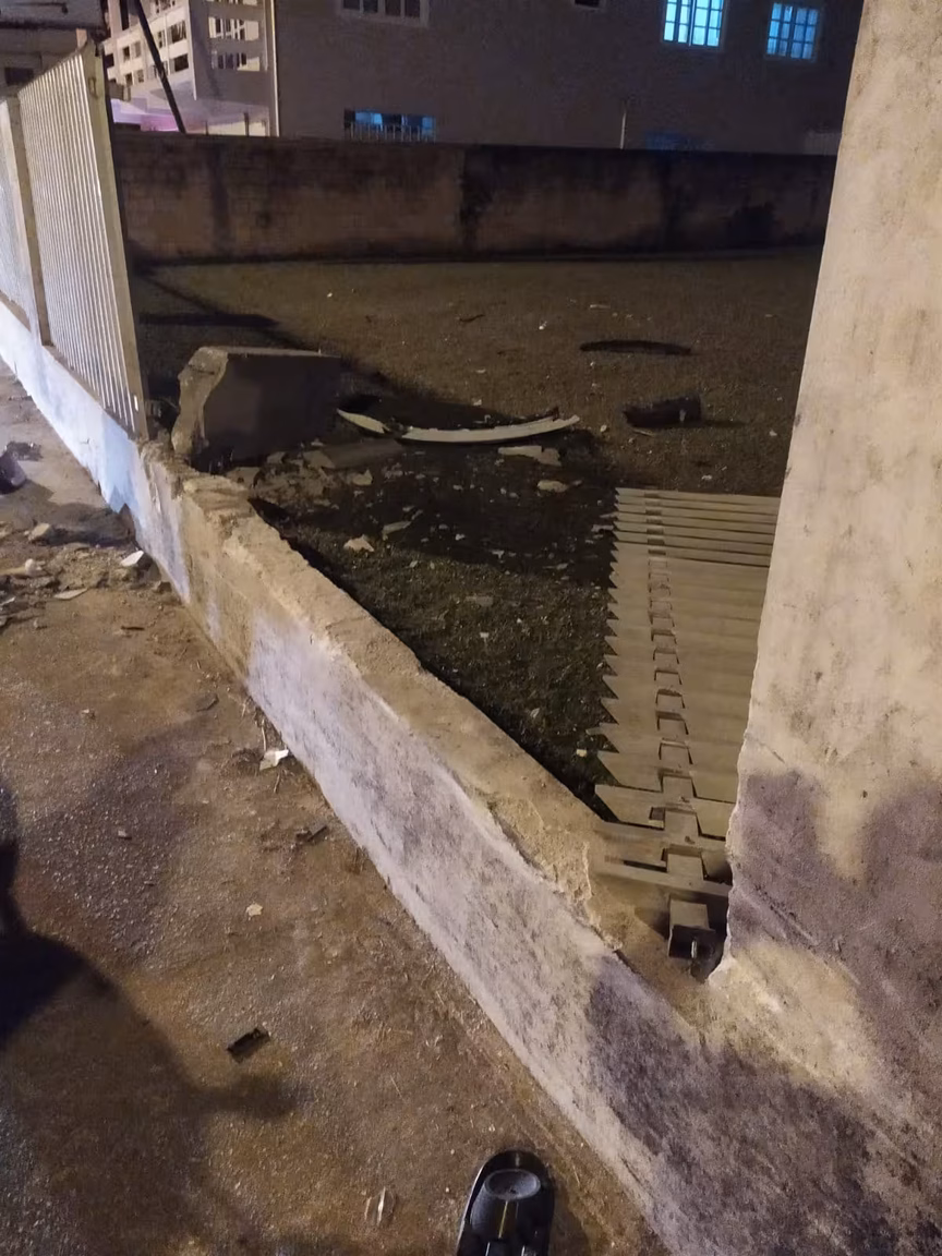 Antes desta colisão, o mesmo veículo atingiu uma moto Honda Fan 160 vermelha com dois homens que caíram na via.