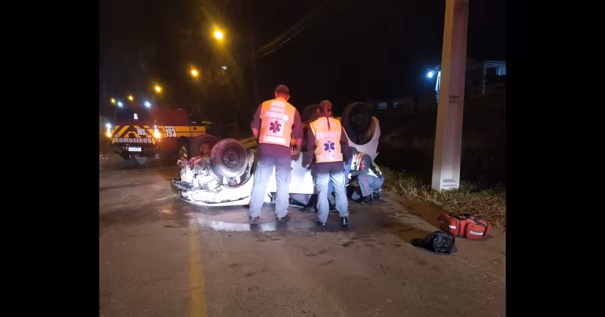 Segundo o relatório do Corpo de Bombeiros, o motorista do carro Gol branco, com placas de Brusque, foi encontrado dentro do veículo, que estava capotado na via. Ele estava consciente e orientado, mas apresentava dores na cervical.