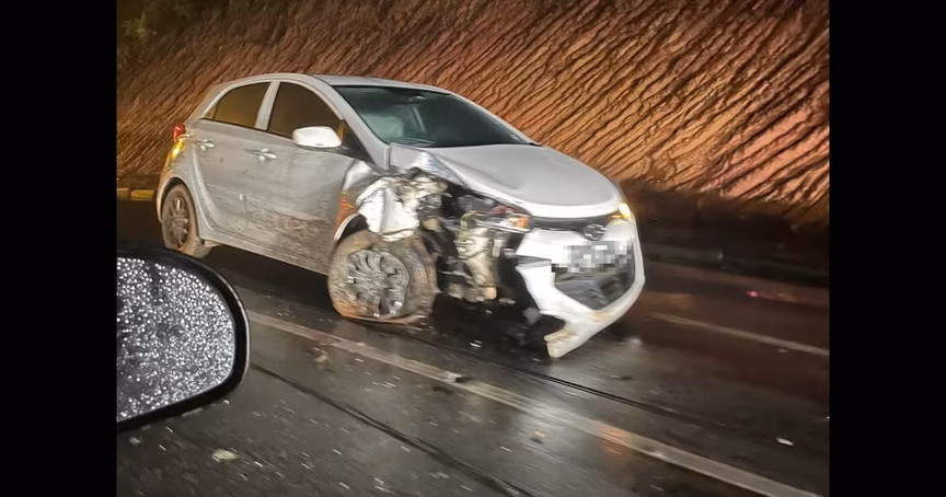 Devido à colisão, o carro derramou óleo na pista e por isso o Corpo de Bombeiros distribuiu cal na via para evitar uma nova colisão.