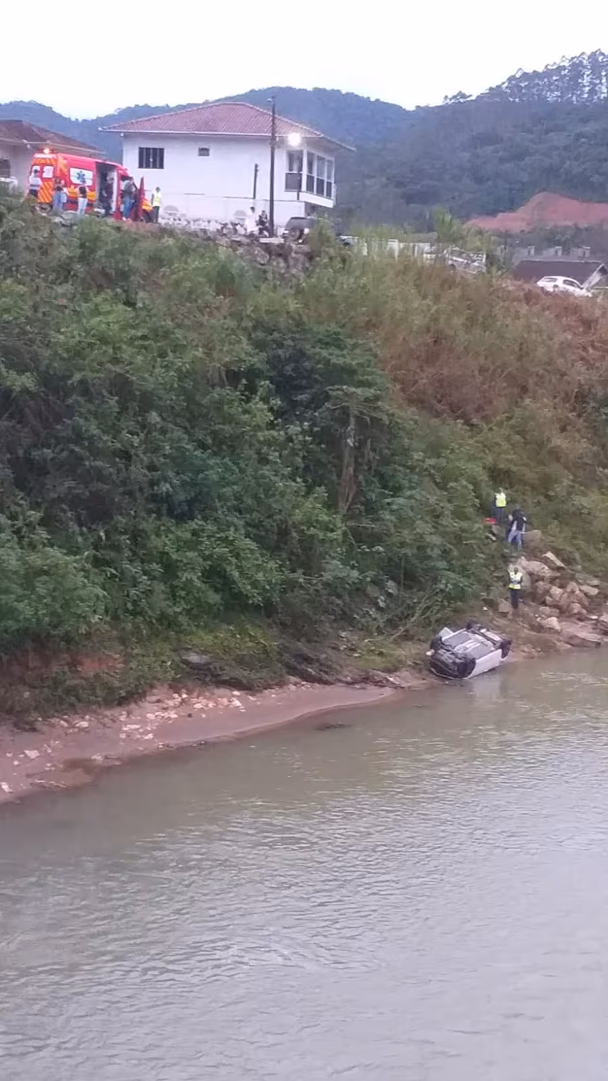 Um carro caiu às margens do rio Itajaí-Mirim, na manhã desta terça-feira, 5, em Botuverá. O fato ocorreu próximo da rodovia Pedro Merizio, na rua Domingos Bósio, no bairro Centro.