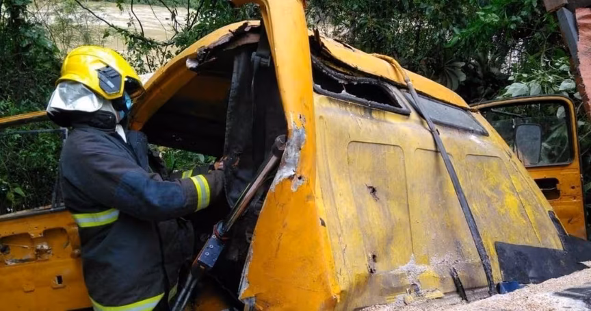 O condutor do caminhão, um homem 66 anos, que caiu a ribanceira, acabou ficando preso às ferragens e, durante o resgate, ele morreu. O condutor da carreta e às três pessoas que estavam no carro com placas de Brusque não se feriram.