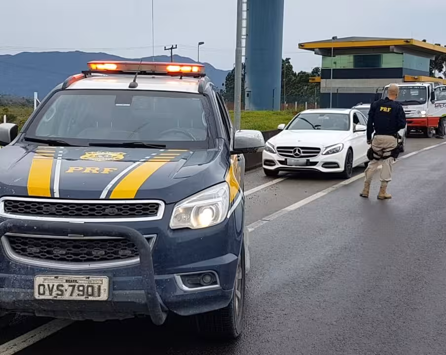 Agentes da Polícia Rodoviária Federal (PRF) fizeram a abordagem após o homem passar pela cancela antes que ela baixasse, junto com o carro que fez o pagamento corretamente. , Durante a conferência dos documentos, a equipe da PRF foi informada pela Autopista Litoral Sul sobre o número de evasões anteriores.