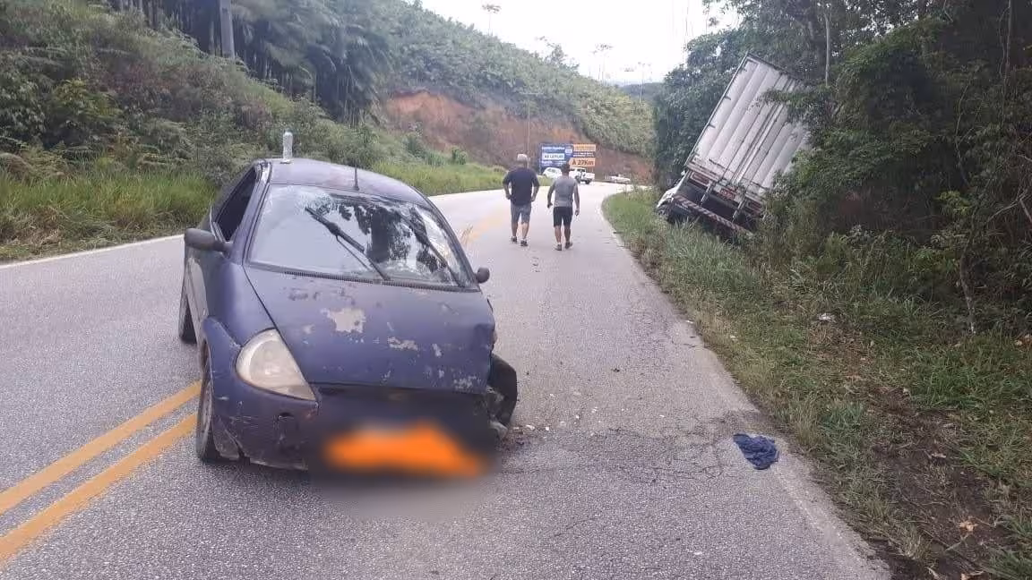 Carro e caminhão se envolvem em colisão na SC-108, em Nova Trento