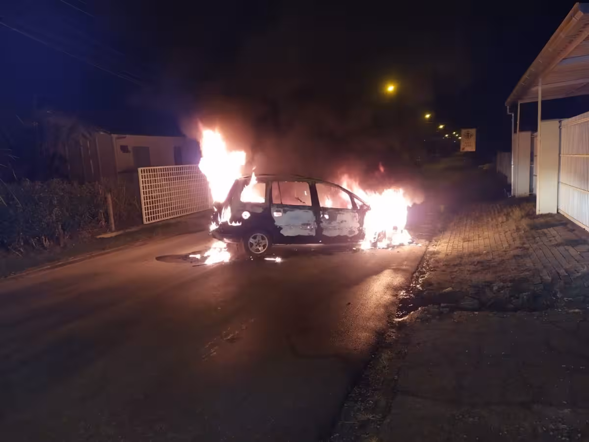 Carro é consumido pelo fogo em rua do bairro Limoeiro, em Brusque