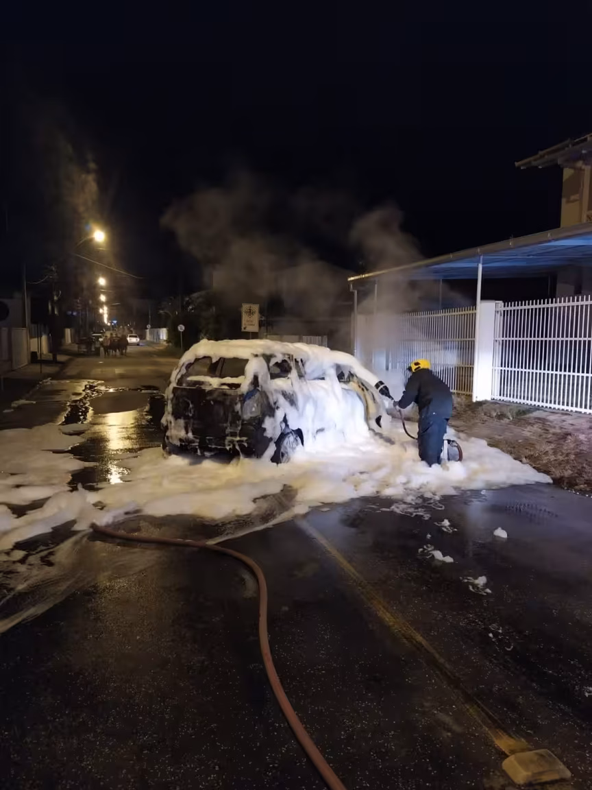 Os bombeiros foram acionados por volta das 22h. O carro, um Zafira de Biguaçu, já estava sendo consumido pelas chamas. Os agentes utilizaram espuma e aproximadamente 1,5 mil litros de água para apagar o incêndio. A Polícia Militar também foi acionada para registrar o incidente.