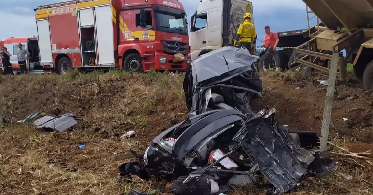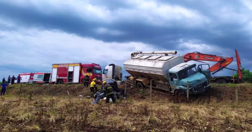 De acordo com o Corpo de Bombeiros, o acidente aconteceu por volta das 9h, em um trecho da rodovia SC-355, próximo ao trevo da BR-282. Duas mulheres e dois homens, que estavam no carro, morreram.