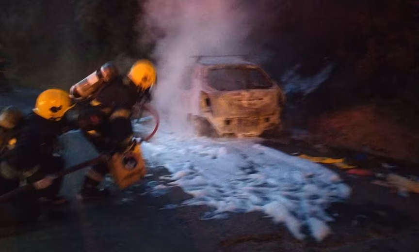 O veículo já estava totalmente tomado pelas chamas quando os bombeiros chegaram para atender a ocorrência.