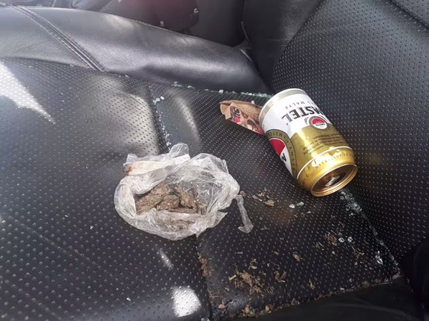 O condutor do veículo não foi localizado pela Polícia Militar, que atendeu a ocorrência. Dentro do carro, os policiais encontraram uma lata de cerveja e uma quantidade de maconha.