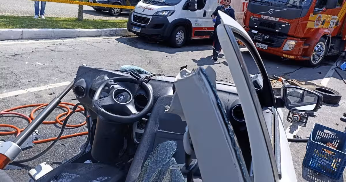 O Corpo de Bombeiros foi acionado e, ao chegar no local, por volta das 11h40, encontrou a condutora do carro, mulher de 39 anos, presa nas ferragens.