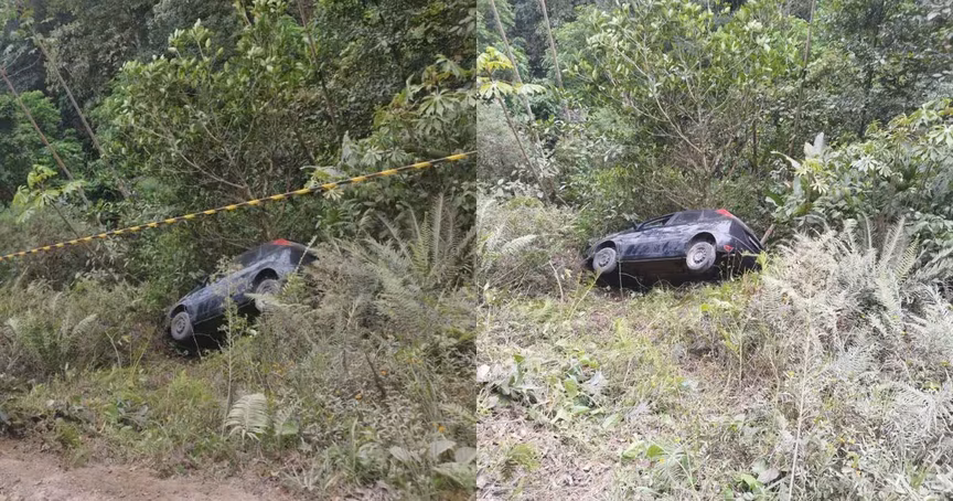 Carro fica preso em árvore após cair em ribanceira, em Botuverá