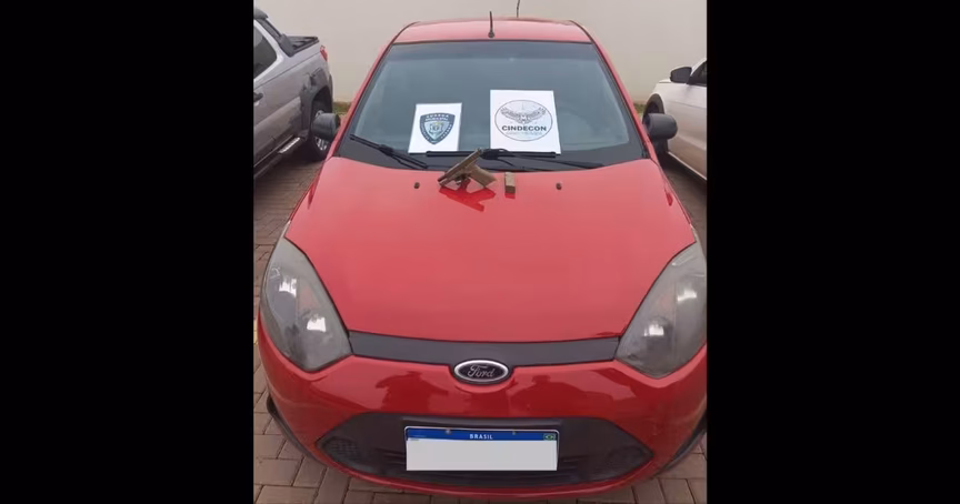 Uma mulher estava com o carro. Dentro dele havia uma arma de fogo registrada no nome dela. Ela não tinha porte de armas.