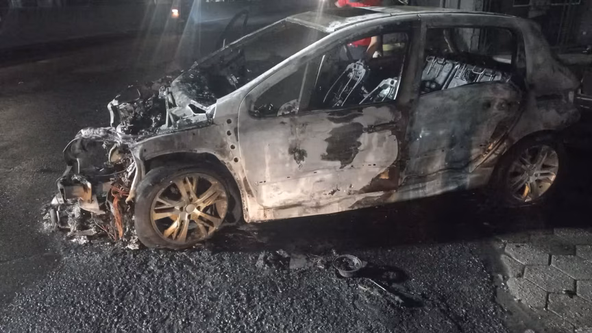 1. Carro é destruído por incêndio na manhã desta segunda-feira no Jardim Maluche, em Brusque