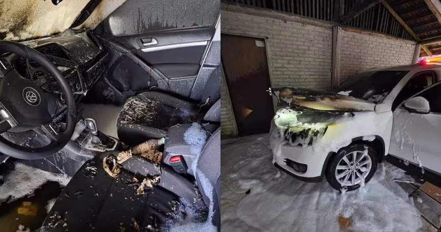 Após a extinção das chamas, o veículo foi deixado aos cuidados do proprietário. Ele relatou que estacionou o carro na garagem e entrou em casa. Um tempo depois, sentiu cheiro de queimado e foi checar, percebendo que o carro estava em chamas.