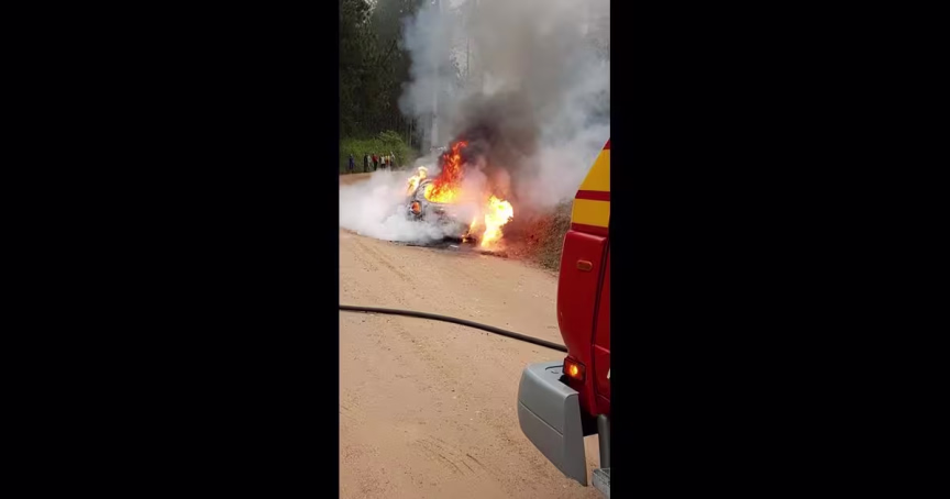Um carro pegou fogo no bairro Lageado Alto, Guabiruba, nesta segunda-feira, 1º. O Corpo de Bombeiros foi acionado para a ocorrência por volta de 8h25.