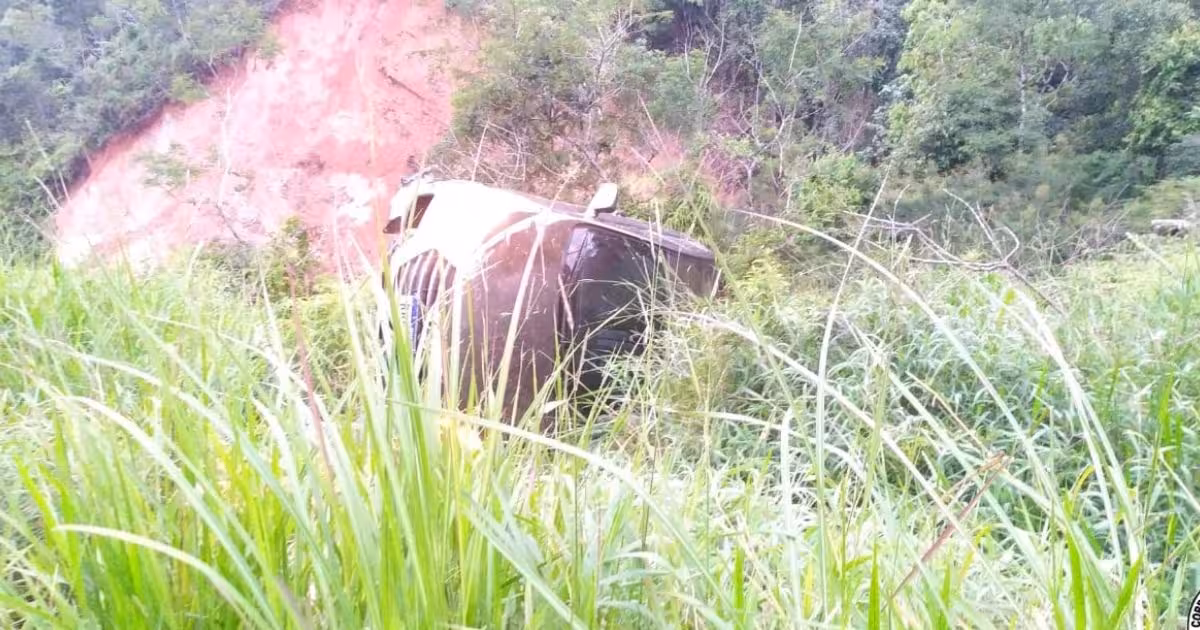 Segundo os socorristas, ao chegarem no local, depararam-se com automóvel capotado fora da pista próximo a ribanceira.