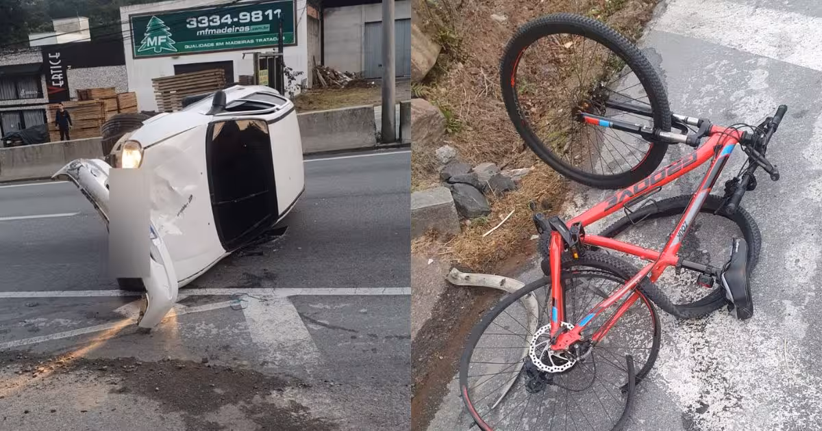 Carro tomba e atropela ciclista em rodovia de Florianópolis