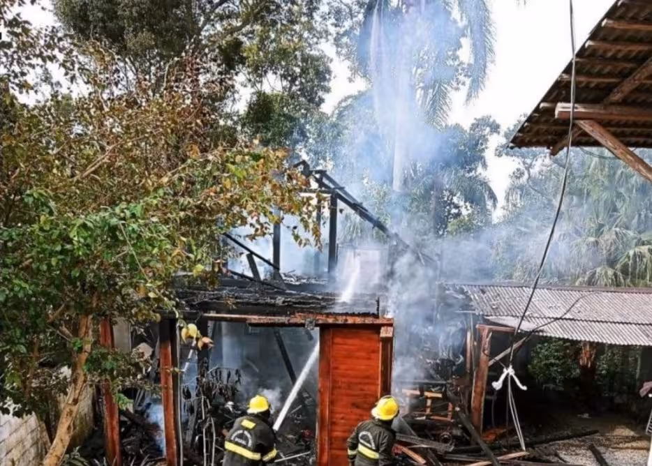 Casa de madeira é destruída após ser atingida por incêndio em Indaial