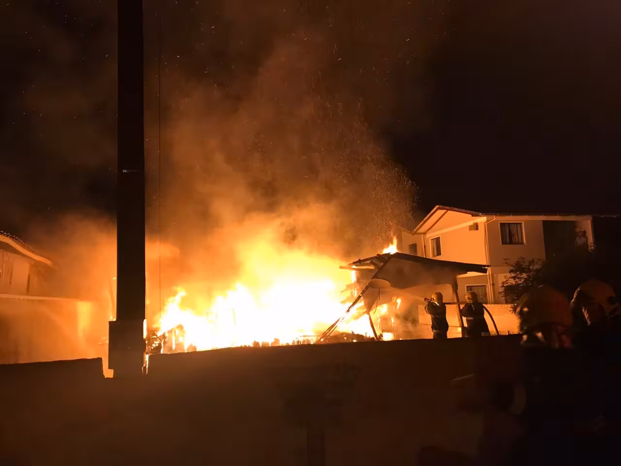 No local indicado, os bombeiros confirmaram a ocorrência, e a casa de madeira já estava totalmente tomada pelas chamas.
