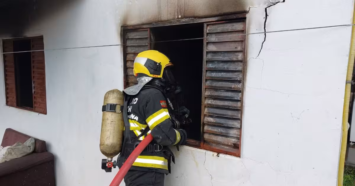 Casa é atingida por incêndio e mulher sofre queimaduras ao salvar crianças em Blumenau