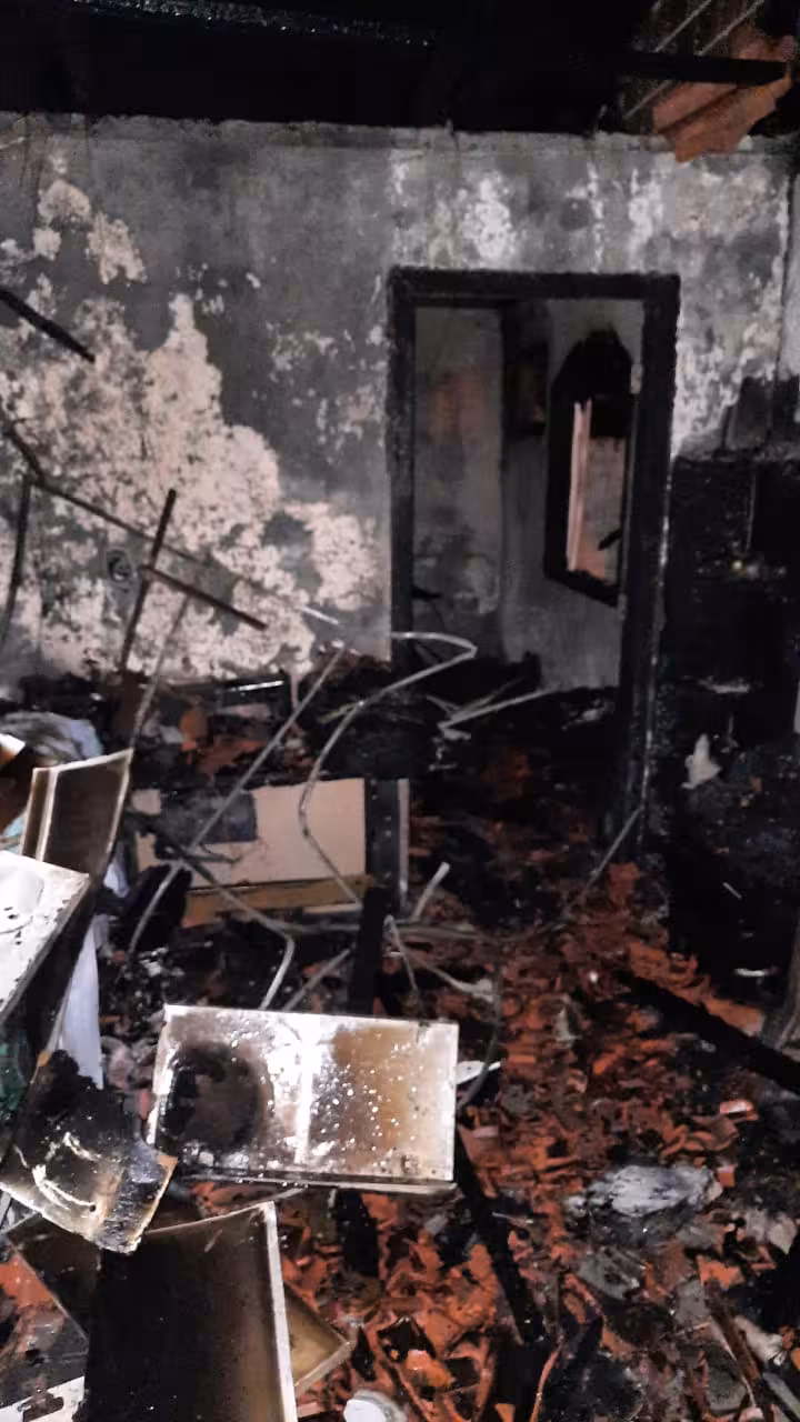Casa é parcialmente destruída após ser atingida por incêndio no bairro Planalto