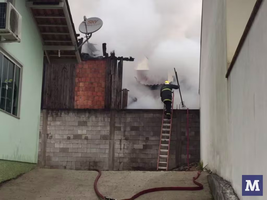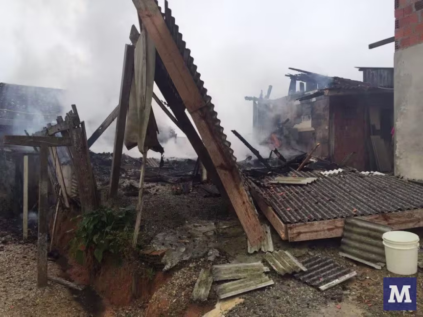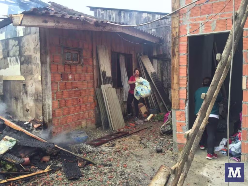 Casa fica destruída em incêndio, no Thomaz Coelho