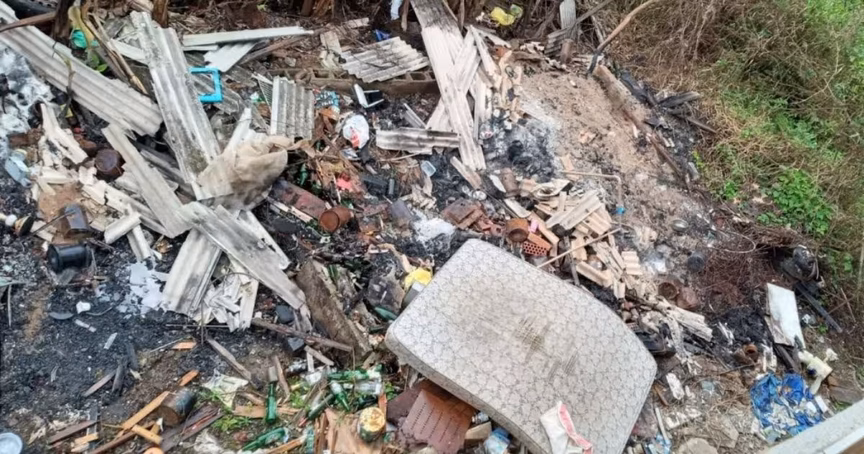 Espaço onde ficava rancho, que foi incendiado. Foto: O Município Blumenau/Especial