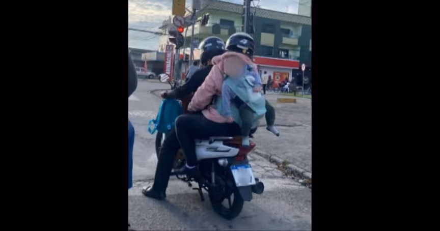 Um casal foi flagrado transportando um bebê sem qualquer proteção na garupa de uma motocicleta em Itajaí, na terça-feira, 16. A cena repercutiu nas redes sociais e chegou ao conhecimento da Coordenadoria de Trânsito de Itajaí (Codetran).