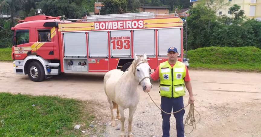 Cavalo que estava solto na Beira Rio é resgatado pelo Corpo de Bombeiros em Brusque