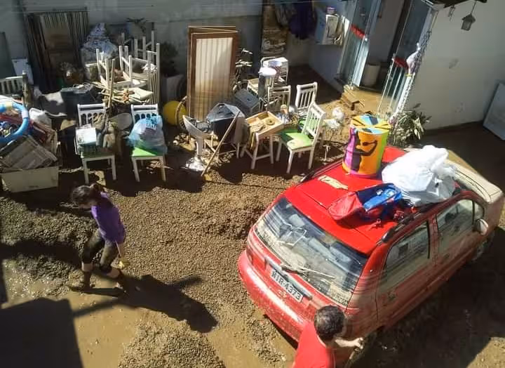 Após a cheia, a única coisa que Riane conseguiu arrumar foi uma secadora de roupas e a geladeira que consertaram. A irmã dela, Resilde Curcio, conhecida como Doca, perdeu todo o depósito de decorações de festas, que ficava no térreo.