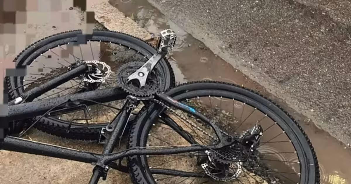 A bicicleta estava com o guidão desmontado e várias peças espalhadas ao redor da vítima.