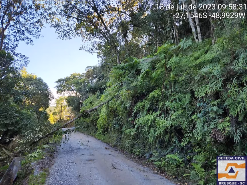 São três quedas de árvores em vias públicas, nos bairros Cristalina, Azambuja e São Pedro. Uma queda de árvore em residência, no Limeira Baixa, seis ocorrências de risco de queda de árvore nos bairros São Pedro, Rio Branco, Limeira Baixa e Águas Claras, além de duas ocorrências de residência vulnerável no Águas Claras e Poço Fundo.