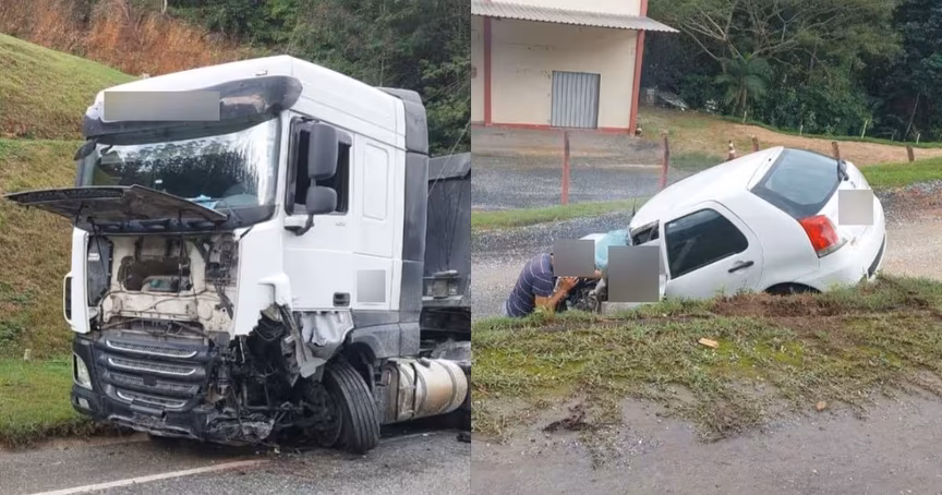 Colisão entre carro e carreta é registrada na rodovia Pedro Merizio, em Botuverá