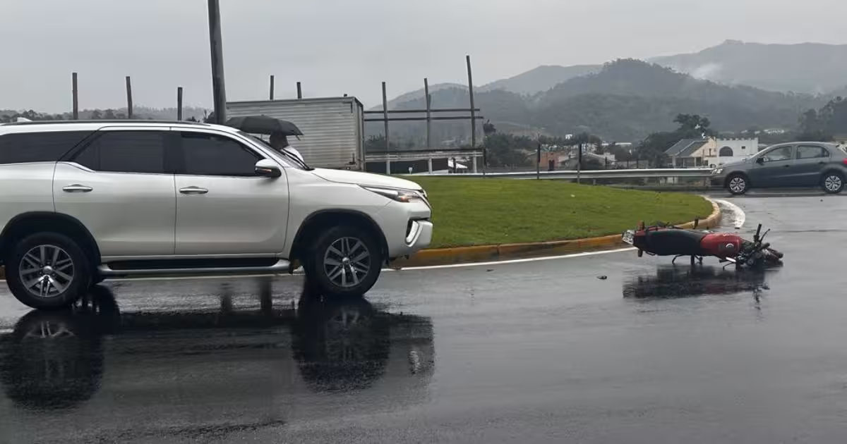 Colisão entre carro e motocicleta é registrada na rodovia Antônio Heil, em Brusque