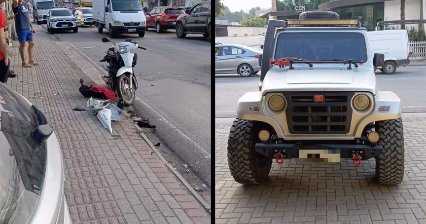 Após o primeiro atendimento, ela foi levada ao pronto-socorro do Hospital Azambuja. Já o condutor do jipe, um homem de 43 anos, não sofreu ferimentos.