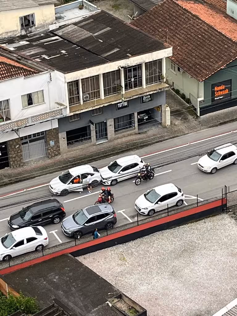 Uma colisão entre três veículos foi registrada no Centro de Brusque na manhã desta quinta-feira, 19. O acidente aconteceu na rua Felipe Schmidt por volta das 8h50.