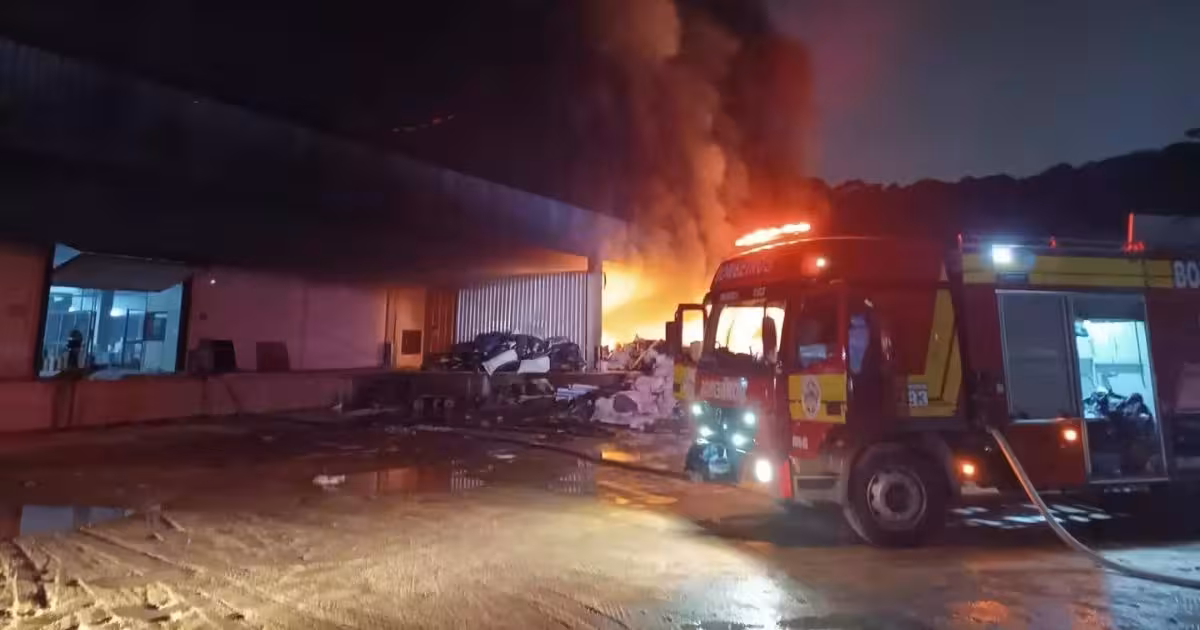 Chegando, os bombeiros registraram fortes chamas e muita fumaça vindo do local. As chamas atingiram os materiais recicláveis que estavam no pátio externo da empresa, além de uma área coberta, onde ficava o maquinário.