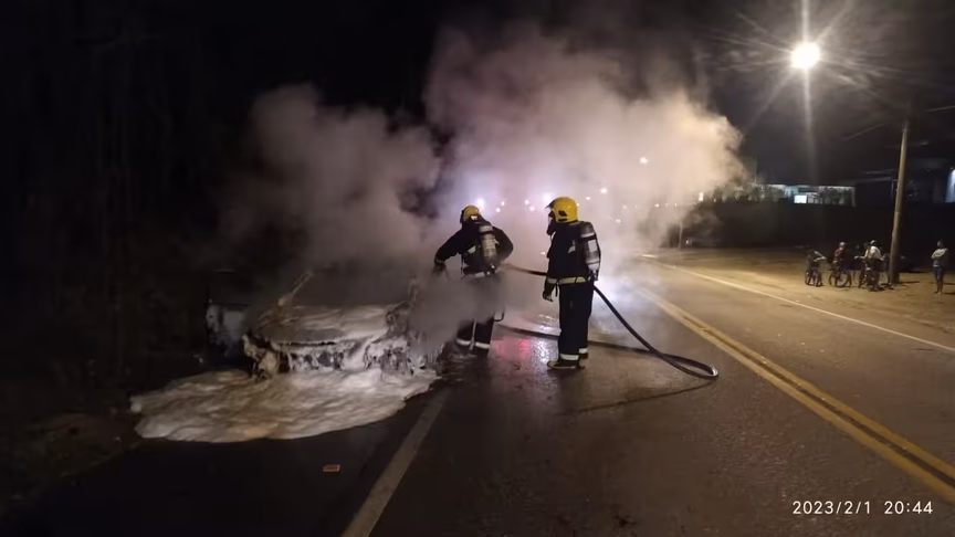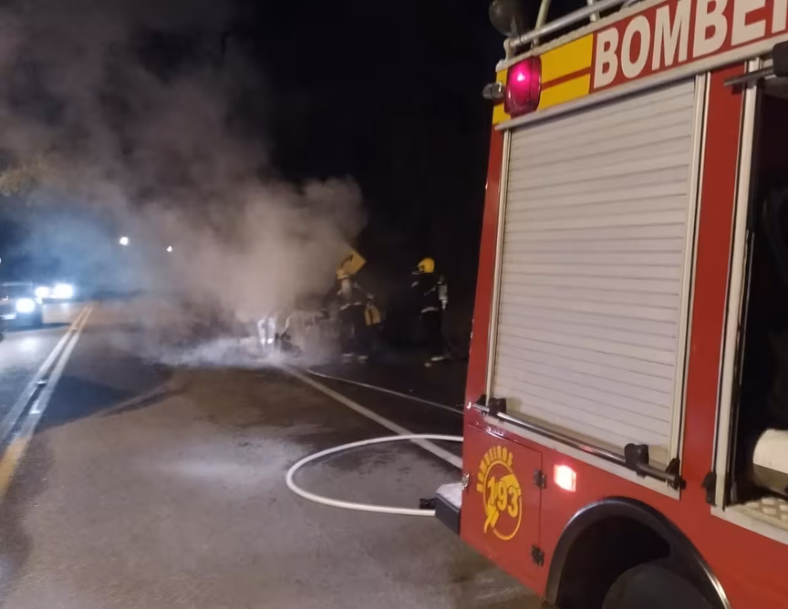Na noite desta quarta-feira, 1º, um carro pegou fogo na rodovia Ivo Silveira, no bairro Bateas, em Brusque. O caso foi registrado por volta das 19h30 pela Polícia Militar Rodoviária (PMRv).