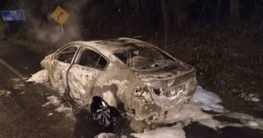 O carro que pegou fogo na rodovia Ivo Silveira, em Brusque na noite dessa quarta-feira, 1º, ficou completamente destruído. O Corpo de Bombeiros atualizou as informações da ocorrência.