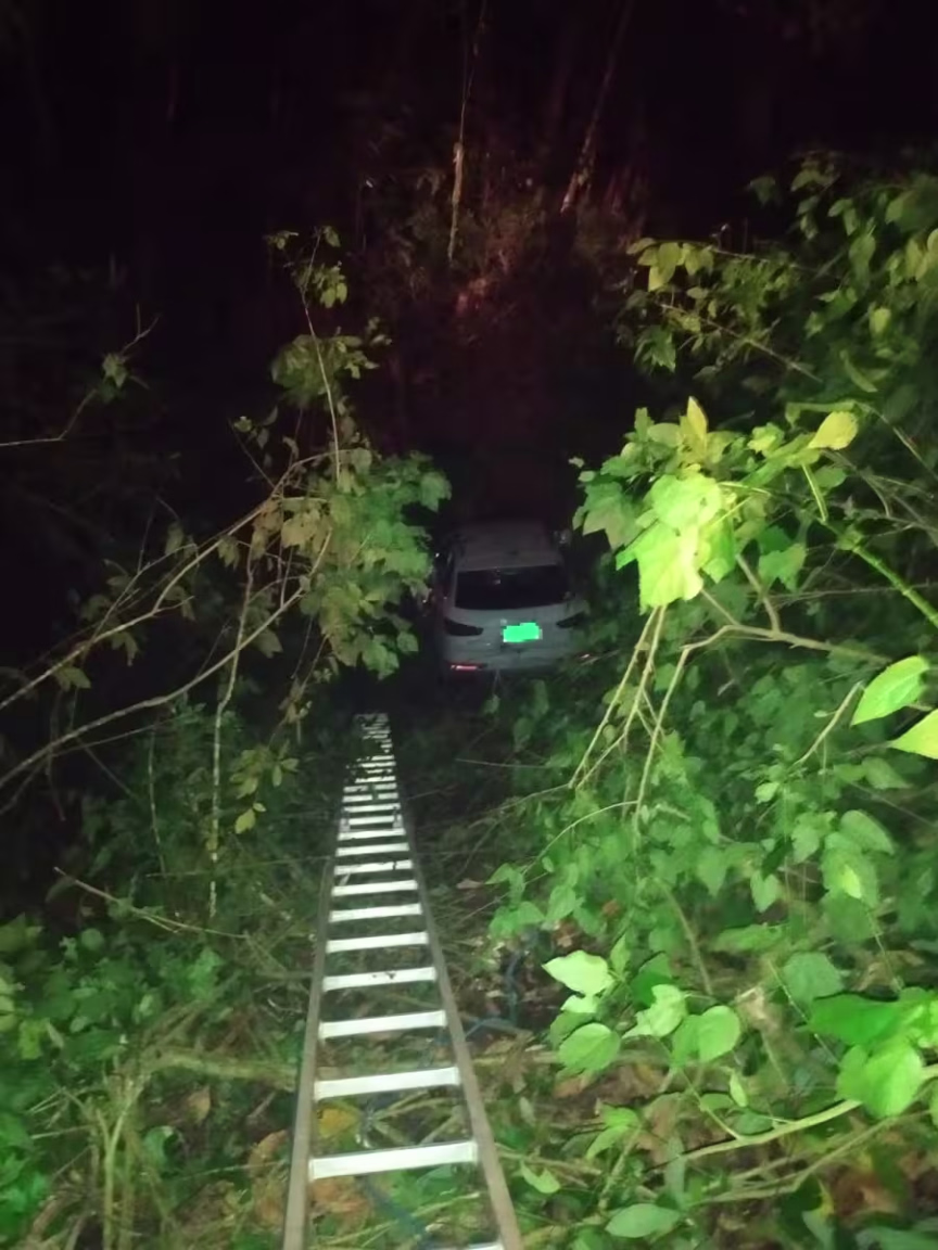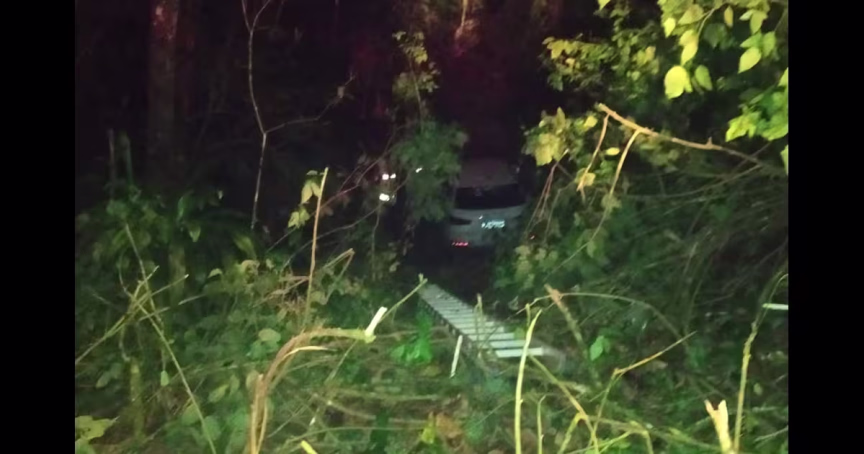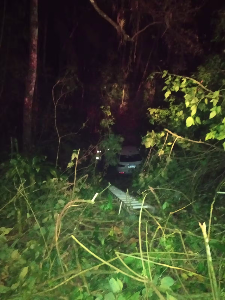 O veículo Audi Q3 foi encontrado caído em uma ribanceira ao lado da rua, com cerca de 15 metros de distância e com cinco metros de altura.