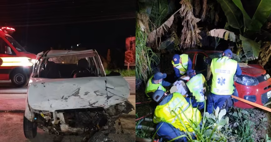 A vítima foi retirada do veículo após mais de 30 minutos de resgate com cordas e ferramentas hidráulicas. Em seguida, recebeu atendimento do Samu e foi encaminhada ao Hospital Azambuja.