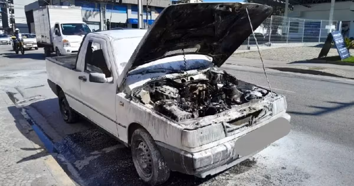 Motorista do carro estava trafegando pela via quando percebeu fumaça